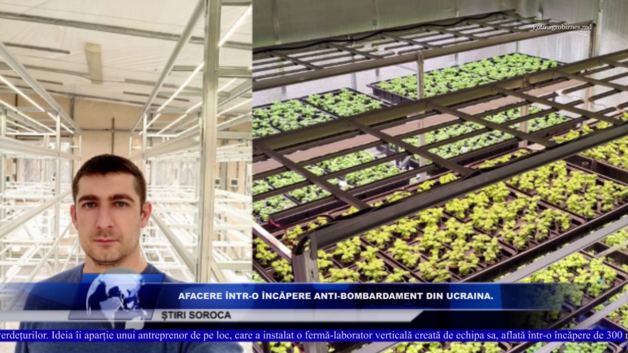 O încăpere anti-bombardament din Ucraina, a fost transformată într-o afacere de producere a verdețurilor. Ideea îi aparține unui antreprenor de pe loc, care a instalat o fermă-laborator verticală creată de echipa sa, aflată într-o încăpere de 300 metri pătrați, înălțimea tavanului ajungând la 5 m.
