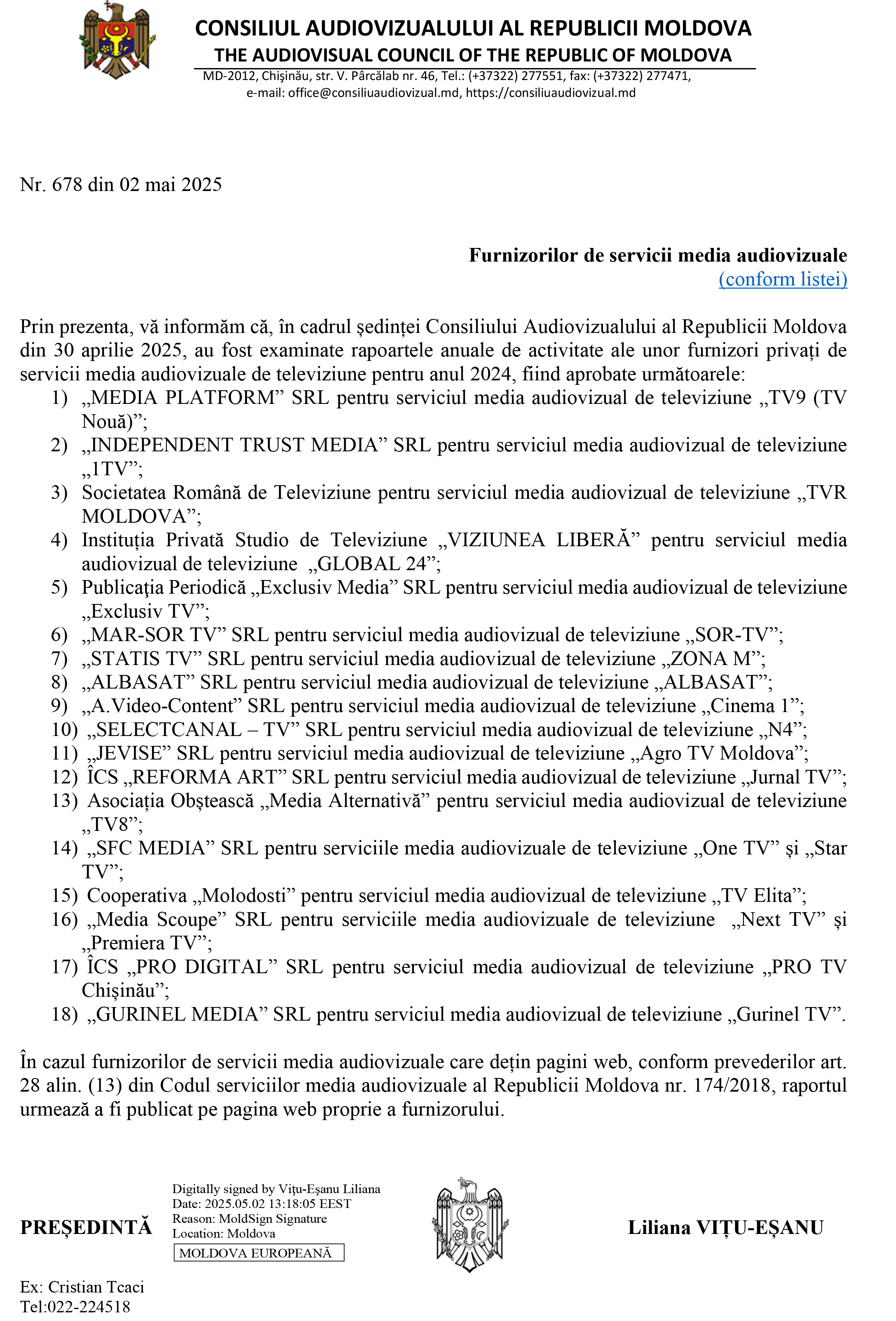 Toate produsele media realizate sunt difuzate pe platforma noastră media, Teleradio Soroca, care include: