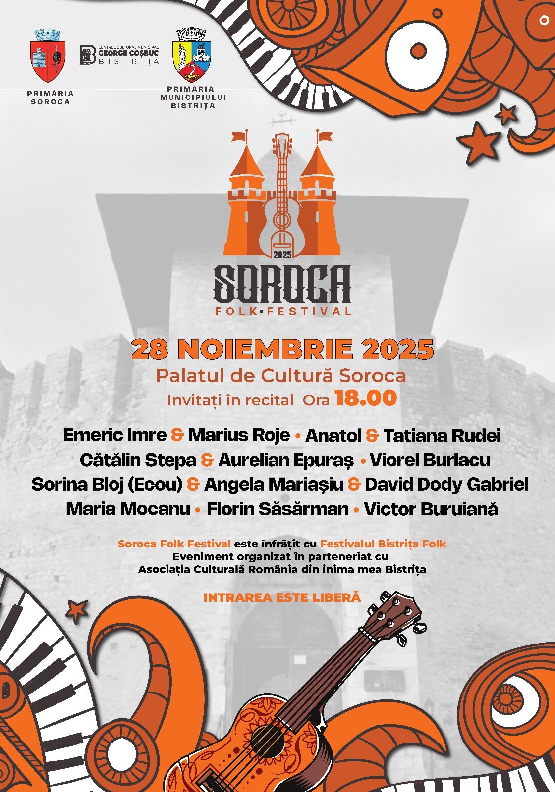 Municipiul Soroca va găzdui unul dintre cele mai apreciate evenimente culturale dedicate muzicii folk. Pe 28 noiembrie 2025, în incinta Palatului de Cultură, va avea loc prima ediție a festivalului „Soroca Folk Festival 2025”.