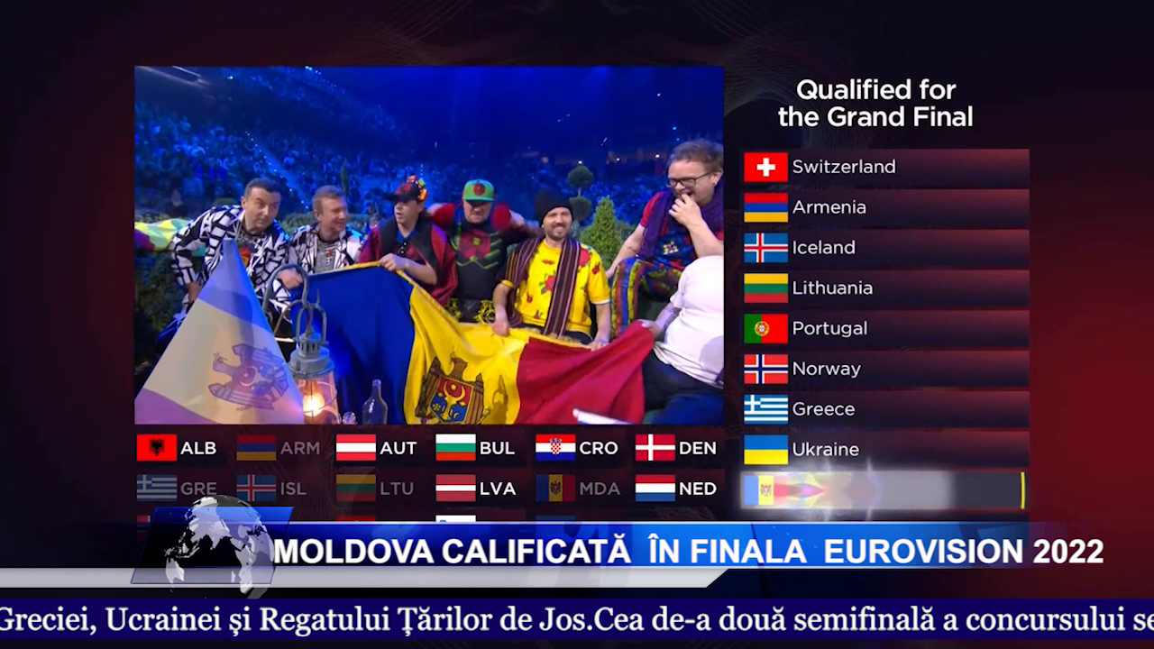 Țara noastră s-a calificat în finala concursului Eurovision 2022.Formația „Zdob şi Zdub” şi orchestra Frații Advahov au reprezentat Republica Moldova cu piesa „Trenuleţul” și au acumulat numărul necesar de voturi pentru a accede în marea finală. Reprezentanții țârii noastre au evoluat sub numărul 09 şi au avut în sală o mare susținere prin aplauze furtunoase.