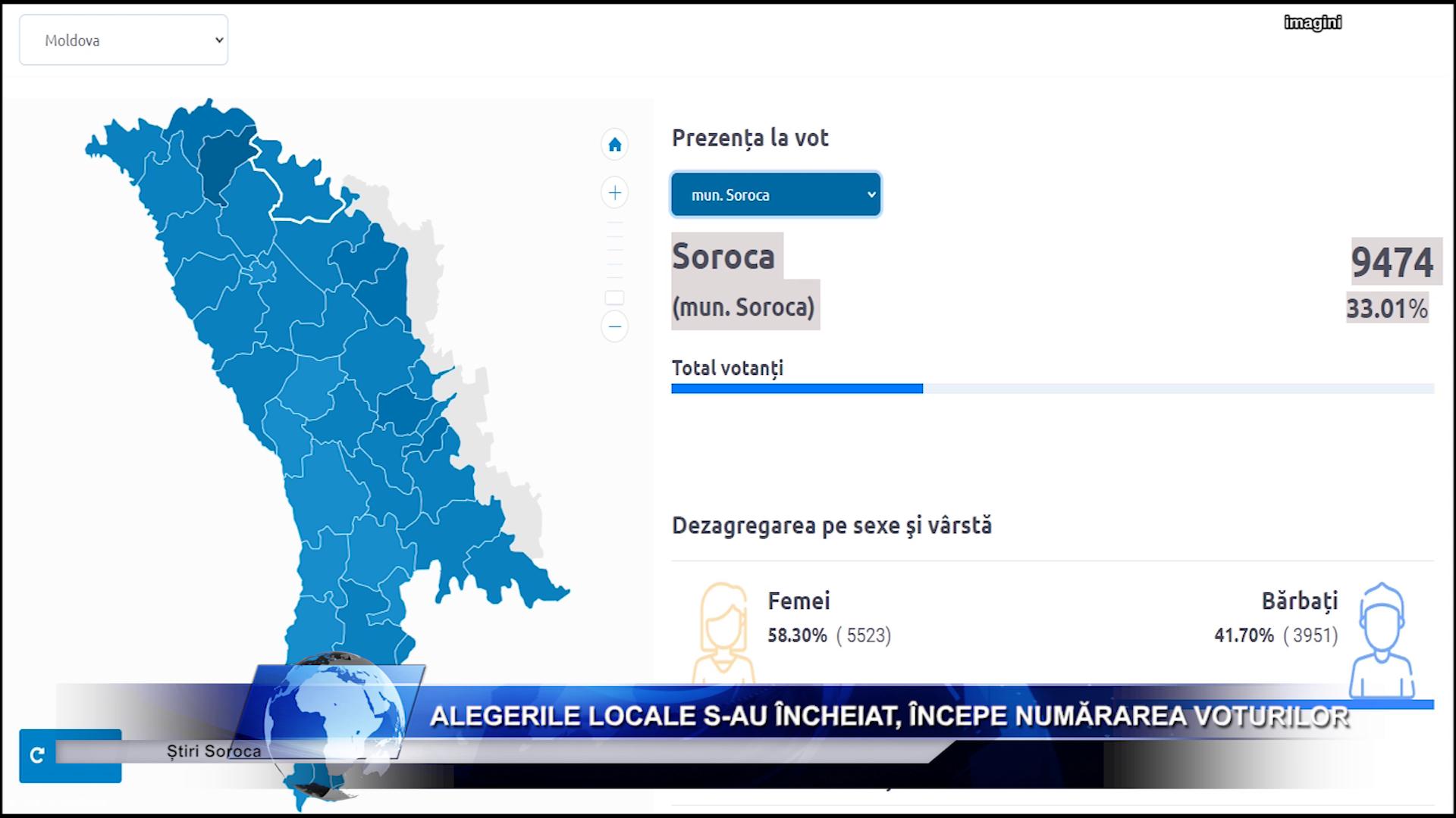 Cea mai activă localitate, unde rata de prezență la vot este de aproape de 50 la sută, este satul Baxani. În municipiul Soroca rata de participare este de aproximativ 19%.