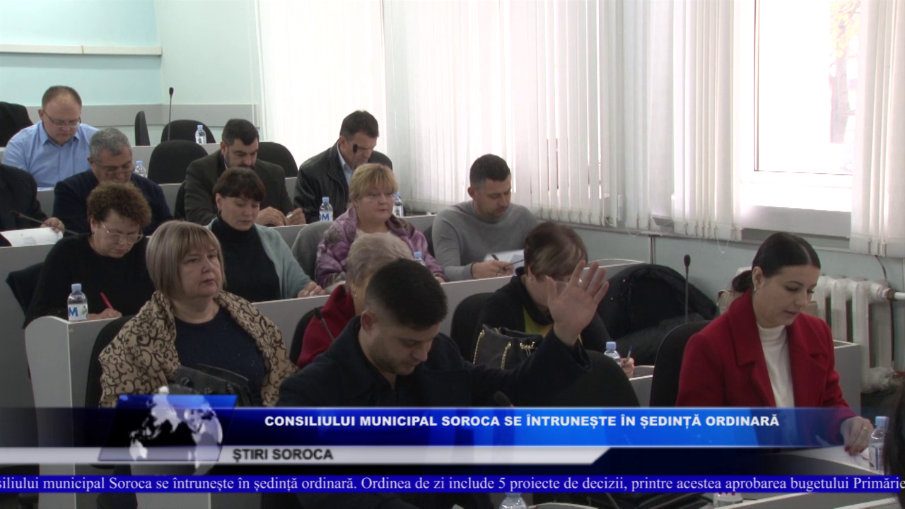 Luni, la data de 12 decembrie, Consiliului municipal Soroca se întrunește în ședință ordinară. Ordinea de zi include 5 proiecte de decizii, printre acestea aprobarea bugetului Primăriei mun. Soroca pe anul 2023 în prima lectură și în lectura a doua, aprobarea graficului concediilor de odihnă anuale pe anul 2023 și acordarea mandatului primarului privind efectuarea evaluării competenței profesionale a secretarului Consiliului municipal.