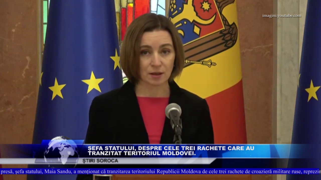 Astăzi, 11 octombrie, în cadrul unui briefing de presă, șefa statului, Maia Sandu, a menționat că tranzitarea teritoriului Republicii Moldova de cele trei rachete de croazieră militare ruse, reprezintă o încălcare flagrantă a spațiului nostru aerian și a neutralității țării.