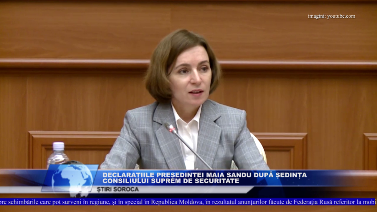 MAIA SANDU, PREȘEDINTA REPUBLICII MOLDOVA ” La ședință s-au discutat potențialele consecințe ale escaladării conflictului militar în Ucraina, inclusiv riscurile unor incidente nucleare. Raportorii s-au referit la mai multe categorii de riscuri: creșterea fluxurilor de refugiați, întreruperea furnizării gazelor naturale, perturbarea furnizării energiei electrice, exploatarea crizei de către grupuri infracționale și agenți străini pentru provocarea destabilizărilor Consiliul Suprem de Securitate a aprobat o serie de recomandări, inclusiv: - creșterea vigilenței și actualizarea planurilor de acțiuni, corespunzător noilor riscuri; - monitorizarea mai riguroasă a situației din regiunea transnistreană și descurajarea implicării populației din această zonă în activități de mobilizare desfășurate de Federația Rusă; - pregătirea pentru un eventual flux sporit de refugiați; - aprovizionarea cu resurse energetice alternative, în cazuri de urgență; - verificarea planurilor de contingență în caz de incidente nucleare. În prezent, riscul de folosire a armelor nucleare este evaluat ca puțin probabil, dar nu imposibil. În acest context, s-a recomandat Guvernului să verifice gradul de pregătire a instituțiilor și a populației pentru eventualitatea consecințelor unor incidente nucleare și să reia campania de comunicare despre măsurile de protecție în situație de accident nuclear. Rog cetățenii să fie atenți la comunicările Inspectoratului General pentru Situații de Urgență la acest subiect”.