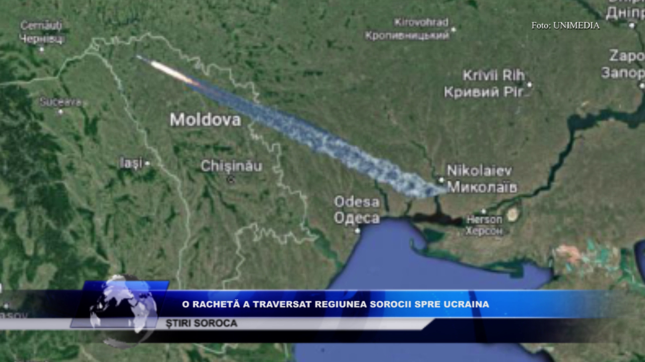 O rachetă a survolat spațiului aerian al Republicii Moldova, informația a fost confirmată de Ministerul Apărării. Structurile responsabile din cadrul instituției au detectat, la ora 10:18, o rachetă, care a traversat spațiul aerian al Republicii Moldova, deasupra localității Mocra din regiunea transnistreană și, ulterior, deasupra localității Cosăuți din raionul Soroca, cu direcția spre Ucraina.