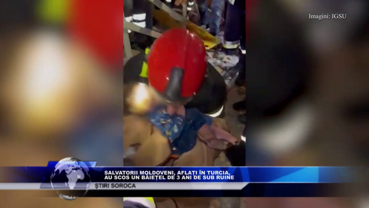 Salvatorii moldoveni plecați în misiune au salvat un băiețel de trei ani de sub ruinele unui bloc pus la pământ de cutremurul devastator produs luni dimineață, în Turcia. Copilul a fost recuperat în siguranță, după ce echipajul de specialiști a reușit să-l găsească sub dărâmături. Micuțul a fost prins sub ruine timp de patru zile. Salvatorii au utilizat mijloace specializate de căutare, iar după ce au stabilit că acesta se află blocat în construcția puternic avariată au reușit să-l scoată viu și nevătămat. Copilul a fost ridicat în brațe și pus pe o targă pentru ca medicii să-i poată acorda asistența necesară.