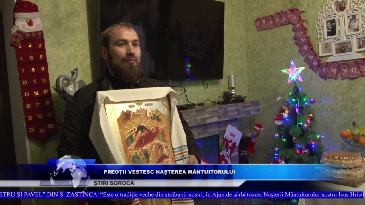 Creștinii spun că venirea preotului în casă și în gospodărie este o binecuvântare pentru ei. La rândul lor, oamenii îi întâmpină pe slujitorii bisericii cu bucate de post, colaci și vin. Pentru familia Patrașcu, Nașterea Domnului este cea mai mare sărbătoare a anului, iar icoana care intră în casă este un semn bun pentru întreaga familie. LARISA PATRAȘCU, GOSPODINĂ “Nașterea Domnului este percepută ca o sărbătoare de bucurie, sufletele noastre sunt îmbunătățite de credință, dragoste față de aproapele, iertare. Ne străduim în fiecare an să ținem post. Pentru această tradiție pregătim colăceii, sarmale, plăcinte, dulciuri, trebuie neapărat să avem colăceii pe masă.” În Ajun de Crăciun cei mai nerăbdători sunt copiii, care așteaptă să meargă la biserică și să colinde. ADELINA PATRAȘCU “Așteptăm Crăciunul ca să mergem la biserică să colindăm părintește și să primim cadouri”.