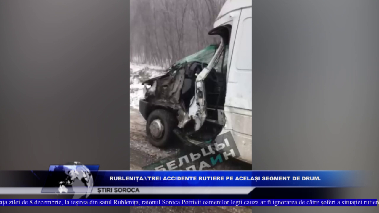 Trei accidente rutiere s-au produs în dimineața zilei de 8 decembrie, la ieșirea din satul Rublenița, raionul Soroca.