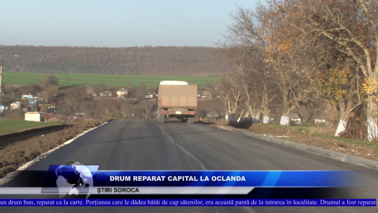 După ani buni de așteptare, locuitorii satului Oclanda, raionul Soroca, vor merge pe un drum bun, reparat ca la carte. Porțiunea care le dădea bătăi de cap sătenilor, era această pantă de la intrarea în localitate. Drumul a fost reparat capital.SERGHEI VACARI,LOCUITOR SATUL OCLANDA ”Drumul era într-o stare deplorabilă, acum ne bucurăm de un drum bun și sperăm ca proiectul să continue.”