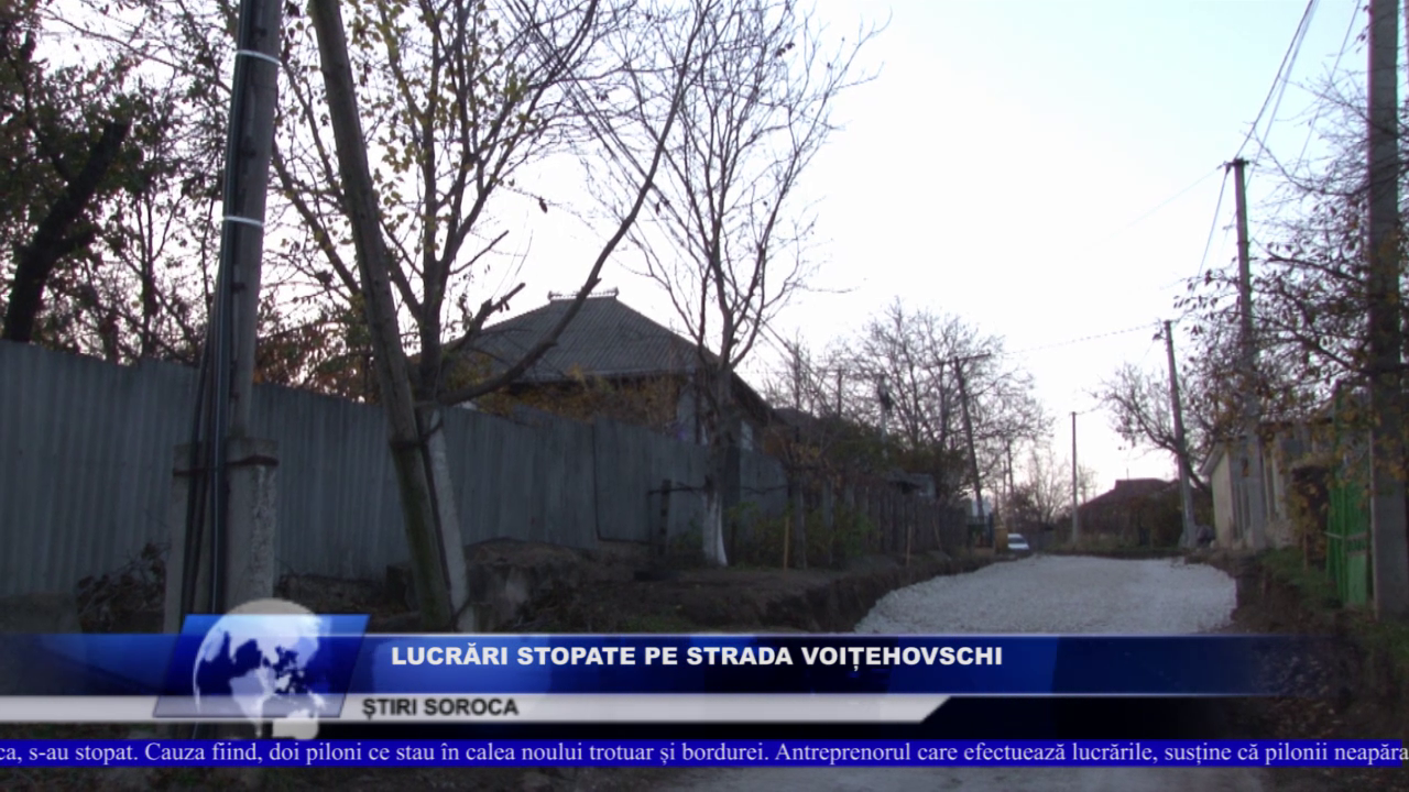 Lucrările de construcție a străzii Arhitector Voițehovschi, din mun. Soroca, s-au stopat. Cauza fiind, doi piloni ce stau în calea noului trotuar și bordurii. Antreprenorul care efectuează lucrările, susține că pilonii neapărat trebuie reamplasați.