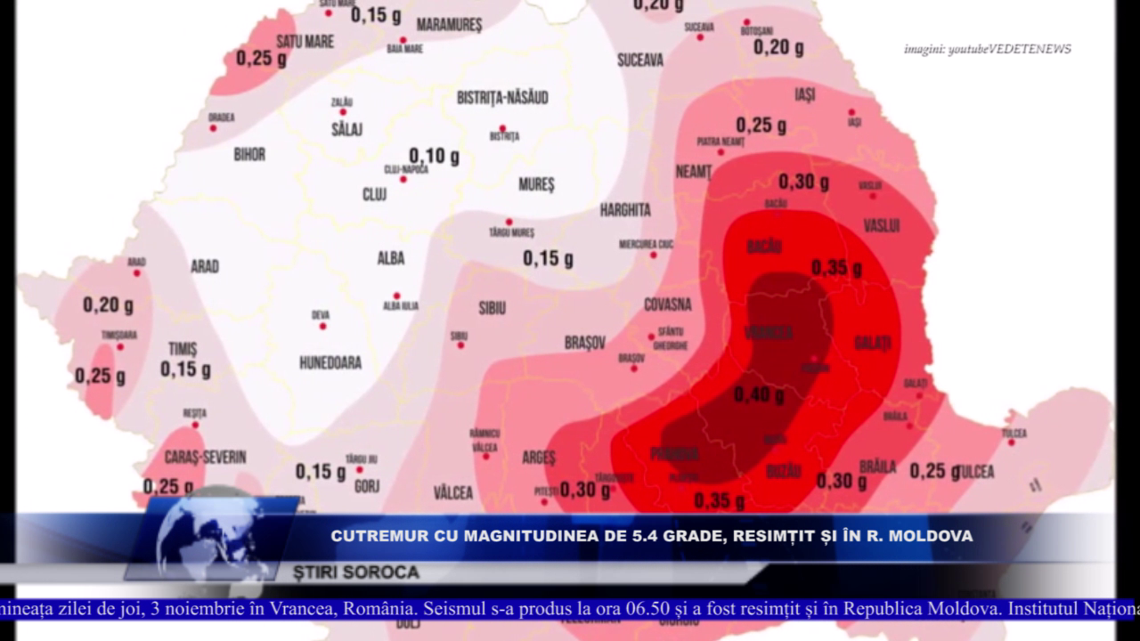 Un cutremur cu magnitudinea de 5.4 grade a fost înregistrat în dimineața zilei de joi, 3 noiembrie în Vrancea, România. Seismul s-a produs la ora 06.50 și a fost resimțit și în Republica Moldova.