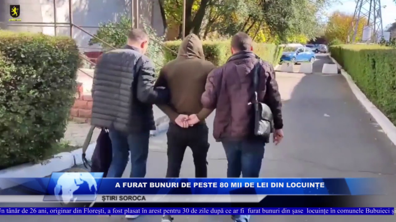 Un tânăr de 26 ani, originar din Florești, a fost plasat în arest pentru 30 de zile după ce ar fi furat bunuri din șase locuințe în comunele Bubuieci și Tohatin. Prejudiciul cauzat se ridică la 80 700 de lei.