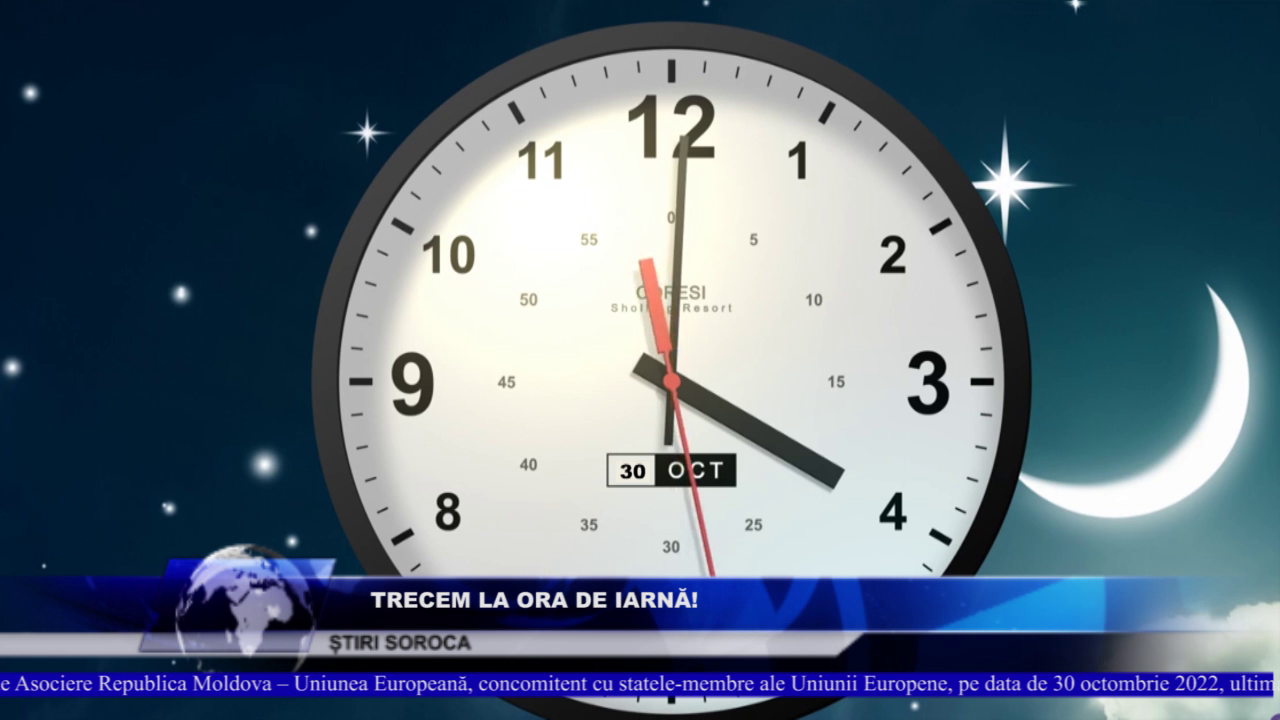 Astfel, Guvernul Republicii Moldova informează că, având în vedere faptul că economia Republicii Moldova este conectată la unele elemente ale Pieței Unice Europene prin intermediul Acordului de Asociere Republica Moldova – Uniunea Europeană, concomitent cu statele-membre ale Uniunii Europene, pe data de 30 octombrie 2022, ultima duminică a lunii octombrie, la ora 4:00, pe întreg teritoriul țării va avea loc trecerea la timpul „de iarnă” prin transferul acelor ceasornicului cu o oră înapoi. Astfel, duminică, ziua va avea 25 de ore în loc de 24, fiind cea mai lungă din an.