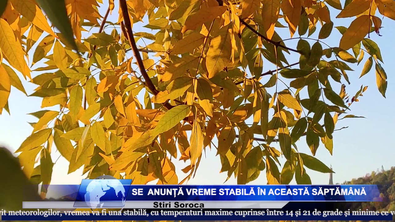 La Soroca vremea se va menține stabilă. Luni, 24 octombrie, noaptea termomentrele vor înregistra +3..+6 C, iar ziua +16..+19 C. Marți, miercuri și joi, noaptea vor avea temperaturi de +6 +10 grade C, iar ziua mercurul din termometre va urca pînă la + 16 +19 grade C. În zilele de odihnă vremea se răcește ușor, astfel, înregistrând noaptea temperaturi de până la +5 +10 grade C, iar ziua maximile vor atinge +14 +17 grade C. De asemenea, dimineața și noaptea vor exista și condiții de ceață în zonele joase de relief.