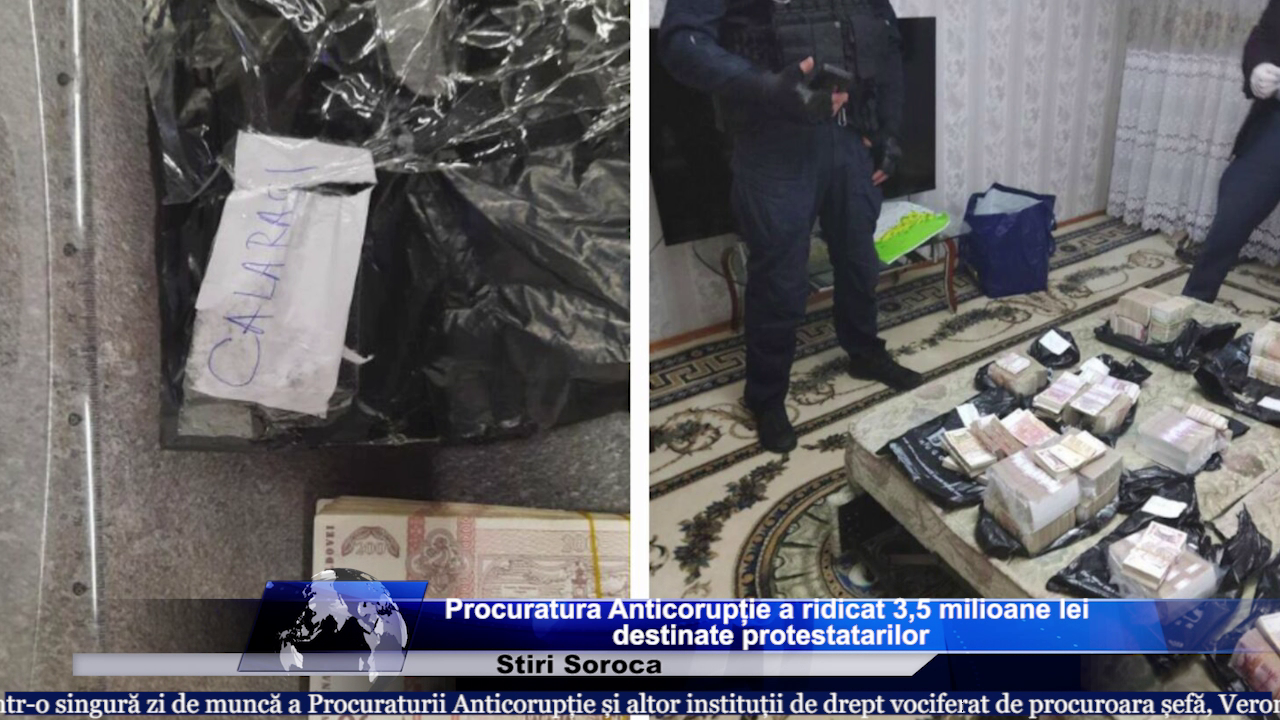 În mai multe locații am ridicat aproximativ 20 de pungi negre cu aceeași emblemă, pungile au o etichetă albă lipită pe ele cu nume de raioane. În total estimăm că astăzi s-au ridicat aproximativ 3,5 milioane lei în aceste pungi. Într-o pungă neagră cu numele Călărași am găsit suma cu peste 25 de mii de lei. Sumele de astăzi includ lei și dolari. Această sumă de 3,5 milioane lei reprezintă sume săptămânale. Până la această oră au fost reținute 8 persoane și urmărirea penală continuă”, a spus Dragalin.