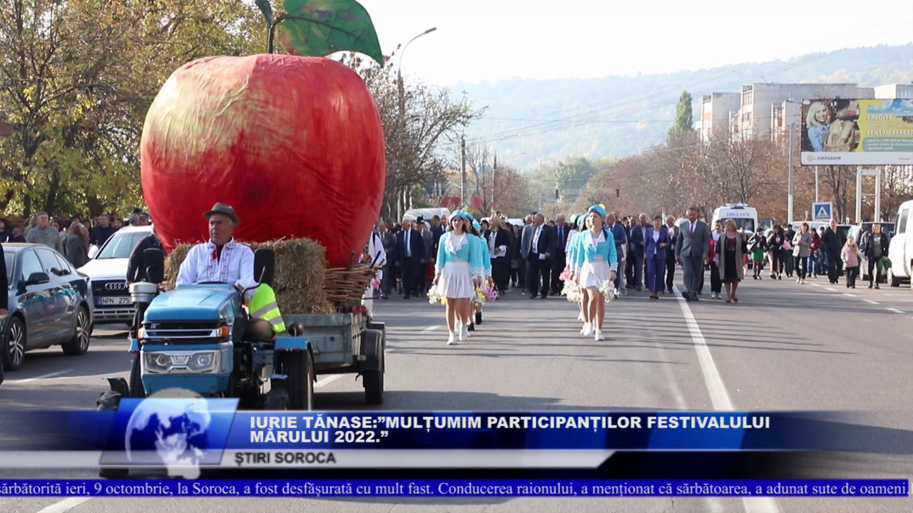 Cea de-a 11 ediție a Festivalului Național al Mărului, sărbătorită ieri, 9 octombrie, la Soroca, a fost desfășurată cu mult fast. Conducerea raionului, a menționat că sărbătoarea, a adunat sute de oameni.