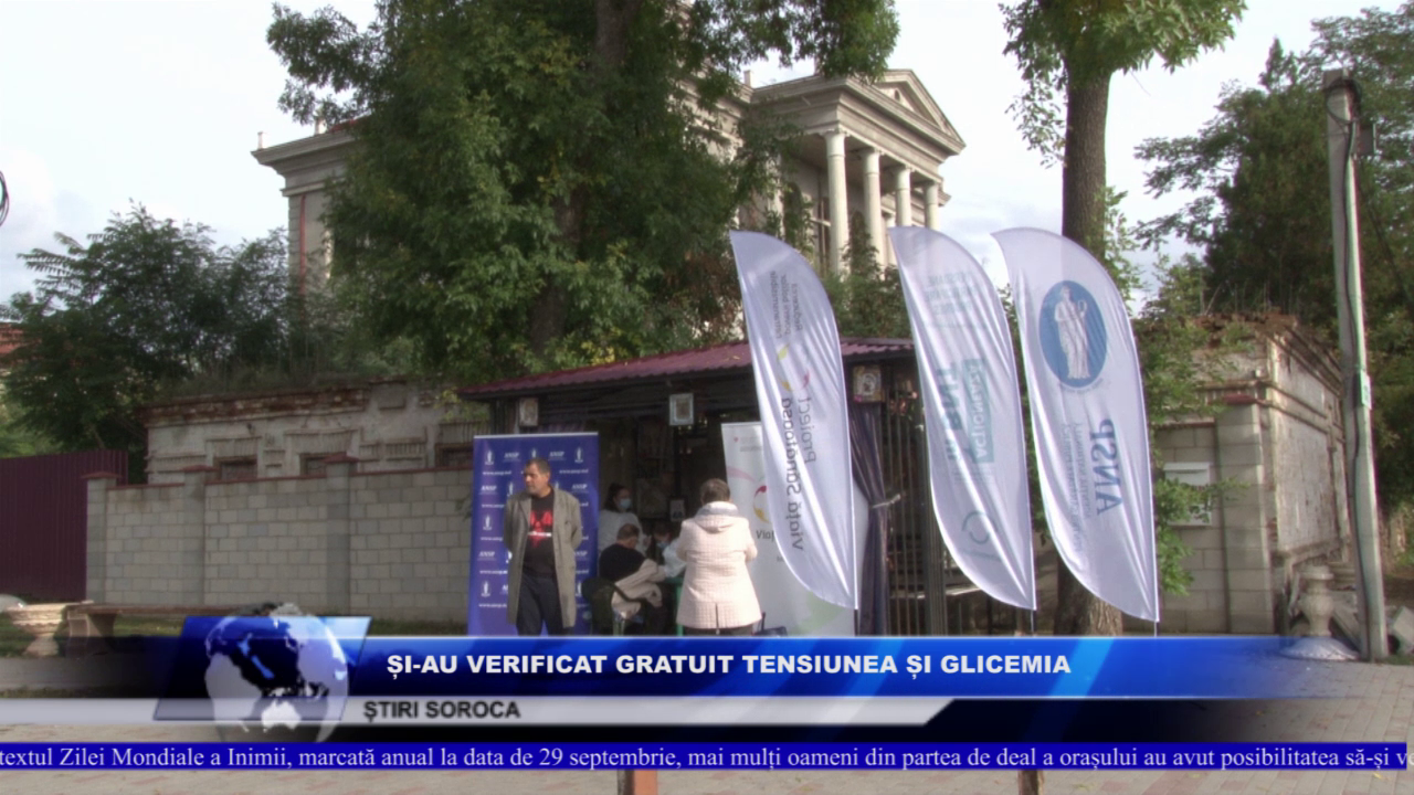 Atât medicii cât și autoritățile îndeamnă populația să-și verifice cât mai des starea de sănătate, pentru a putea preveni astfel, diverse afecțiuni. SVETLANA PĂUNESCU, VICEPREȘEDINTE AL R.SOROCA- Suntem astăzi aici în dealul sorocii pentru a desfășura o activitate din cadrul proiectului Viață sănătoasă. Venim cu scining gratis pentru populație. În acest mod promovăm populația să ducă un mod de viață sănătos. Hipertensiunea arterială şi diabetul sunt printre cei mai importanți factori de risc ai bolilor cardiovasculare, iar organizatorii campaniei vor să atragă atenția asupra importanței efectuării unor controale medicale regulate pentru depistarea lor. MARIA CERNOPÎRSCAIA, MEDIC IGIENIST - Pe parcursul anului 9 din 10 persoane decedează de boli cardiovasculare. Este a treia măsură organizată. Care sunt cauzale belilor cardiovasculare, folosirea tutunului, a alcoolului, mâncarea nesănătoasă, sedentarismul, etc.