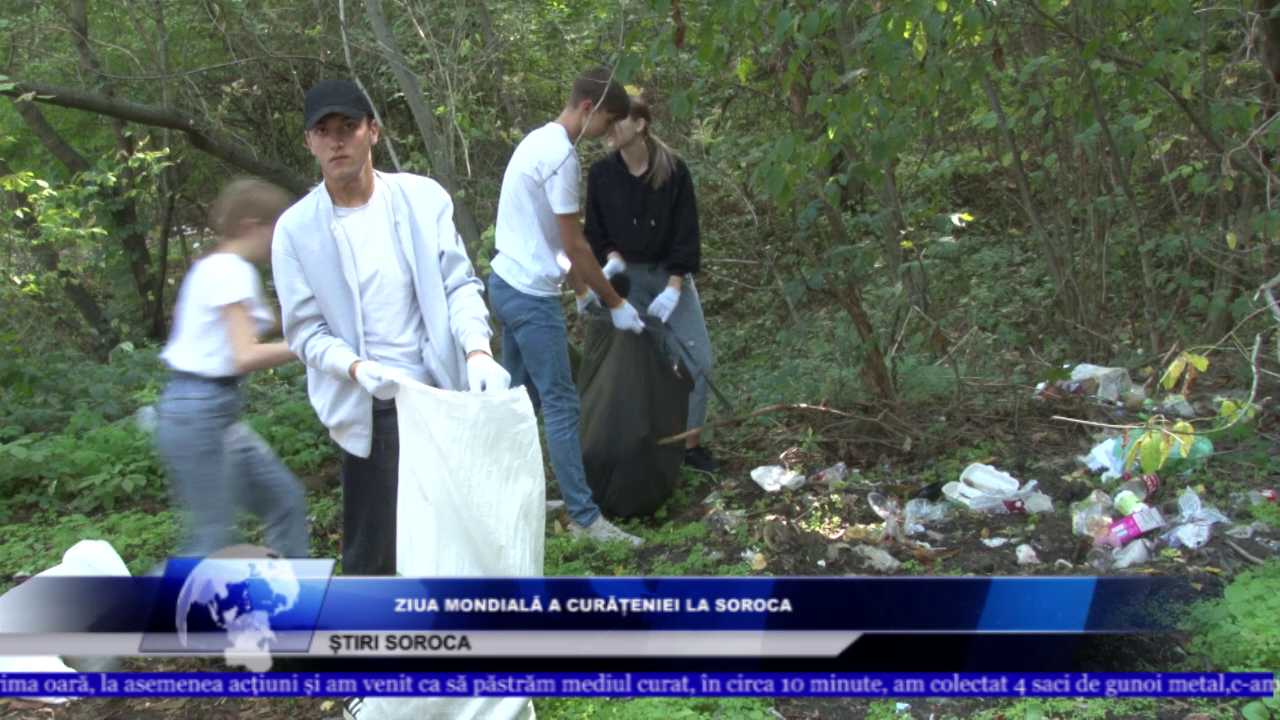 VALENTINA JAMBA, ONG ”ECO SOR” - Astăzi este Ziua Mondială a Curățeniei și la apelul Centrului național de Mediul, Eco Sor a mobilizat voluntarii din raion și din municipiul Soroca, cu ajutorul Direcției de Învățământ. E trist ce gasim noi, e mare mizerie și din păcate se aruncă și la râu, de unde toți doresc să bea apă. Cei care aruncă de fapt aruncă în ei,atât de mult le mulțumesc voluntarilor care vin fără nici un pic de recompensă vin la un apel. Voluntarii, care erau majoritatea elevi, au menționat că sorocenii din păcate, sunt buni și la făcut gunoi, pentru că doar în 10 minute au strâns 4 saci de deșeuri.MARIUS STRULEA, VOLUNTAR - Particip pentru prima oară, la asemenea acțiuni și am venit ca să păstrăm mediul curat, în circa 10 minute, am colectat 4 saci de gunoi metal,c-am mult. ANA CEBAN,VOLUNTARĂ - Împreună cu colegii colectăm deșeurile găsite pe stradă, vom merge până la Lumânarea Recunoștinței, găsit tot felul de gunoi, sticle,pampersuri, chiar cutii. BOGDAN LEȘAN, VOLUNTAR- Astăzi fiind Ziua Mondială a Curățenii, am ieșit să facem ordine în pe malul râului Nistru. Personal particim la aceste acțiuni de salubrizare al treilea ,ba chiar al patrulea an.