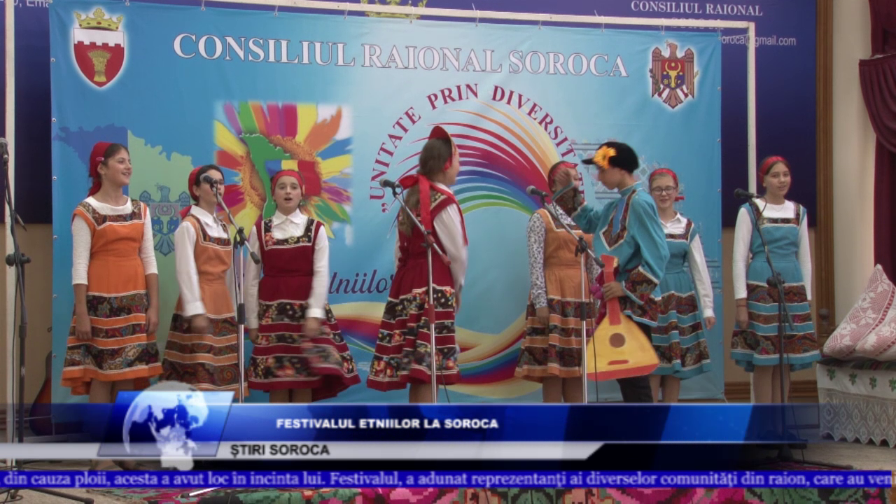 Diversitatea etnică a raionului Soroca a fost sărbătorită cu multă culoare la Palatul de Cultură din Soroca. Deși a fost preconizat ca Festivalul Etniilor ”Unitate prin diversitate” să fie desfășurata în scuarul Palatului, din cauza ploii, acesta a avut loc în incinta lui. Festivalul, a adunat reprezentanți ai diverselor comunități din raion, care au venit cu bucate tradiționale, straie naționale şi au încins dansuri.