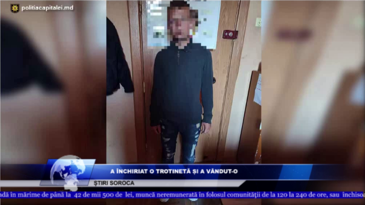 Potrivit oamenilor legii,incidental a avut loc în capitală, suspectul, prin inducerea în eroare și sub pretextul de a închiria o trotinetă electrică pentru un termen de 24 de ore, au încheiat un contract, oferind date false, după care bunul obținut l-a vândut unei persoane necunoscute cu prețul de 1500 lei.