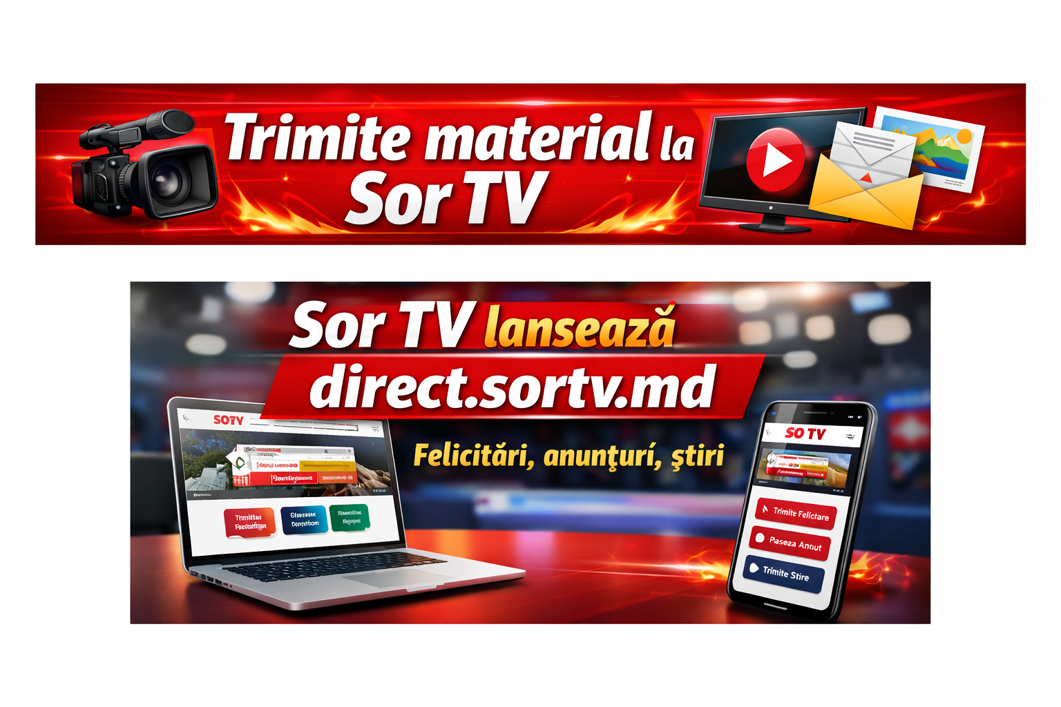 Sor TV a lansat platforma online direct.sortv.md, destinată telespectatorilor care doresc să transmită felicitări, anunțuri sau materiale media direct către redacție.