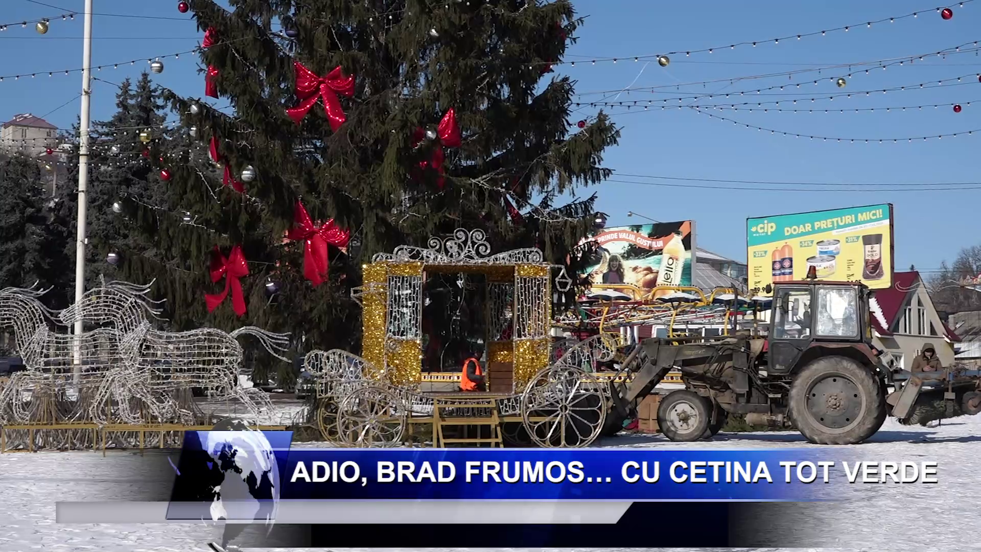 Pomul de Crăciun din Piața Libertății din municipiul Soroca este astăzi despodobit, marcând oficial încheierea sărbătorilor de iarnă. Muncitorii Serviciului de Amenajare strâng ghirlandele, jucăriile și celelalte decorațiuni, urmând ca, în etapa finală, bradul să fie demontat.